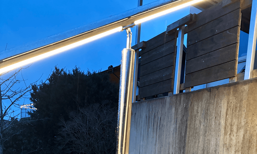 Rostfria räcken med belysning i utomhus miljöer – privat eller offentlig miljö